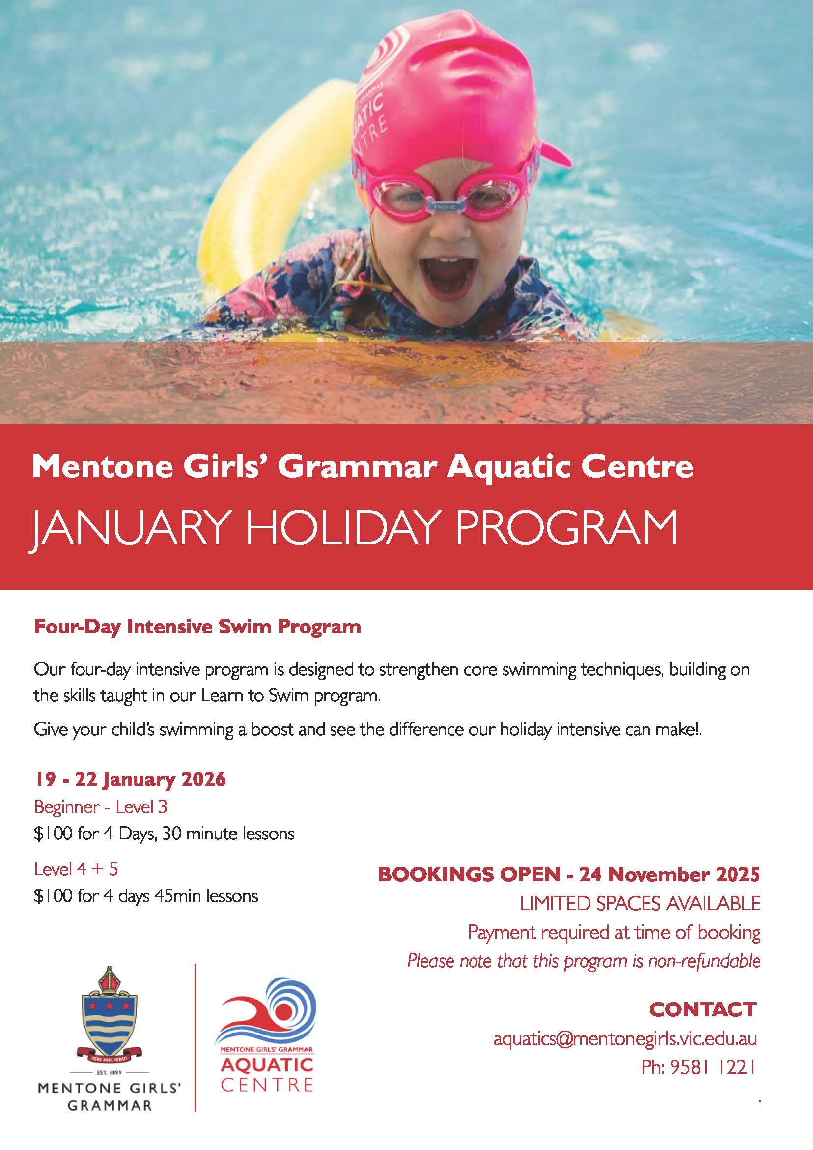 The 2026 school holiday program will be held from 19 to 22 January 2026.